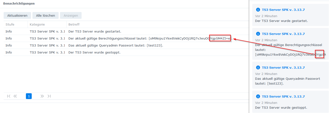 Paketes. Wird der Server wieder gestartet werden auch die Meldungen wieder korrekt angezeigt.
