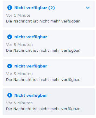Wird der Server manuell gestoppt, erhalten alle Meldungen den Status Nicht verfügbar