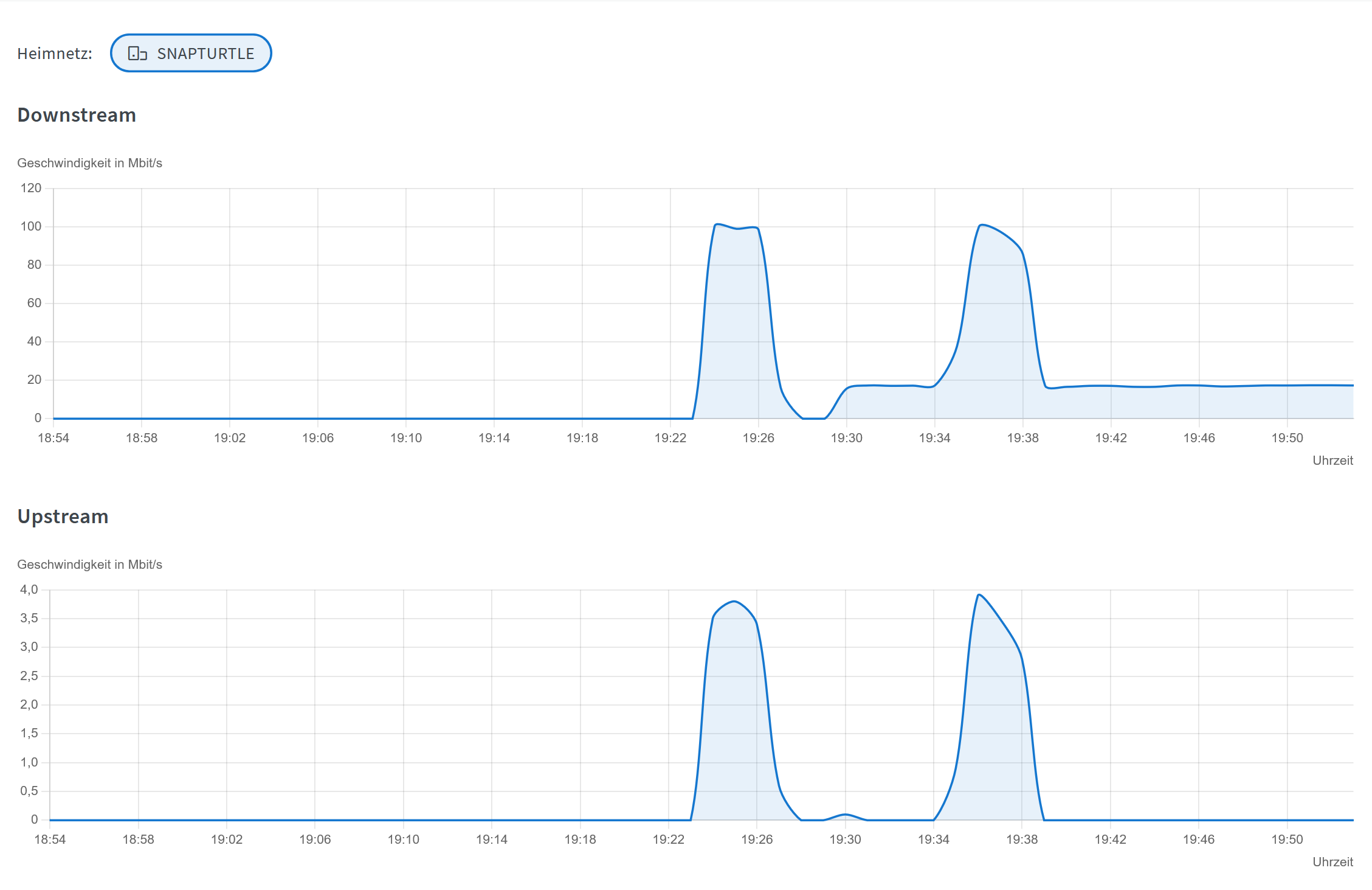 Der Downstream ist in Fritzbox und DSM gleich, jedoch ist der Upstream im DSM ~500 kbyte/s und